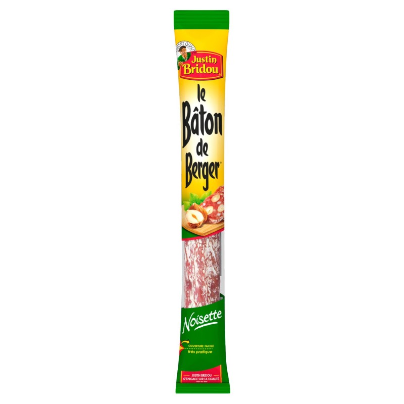 Kombinationen av hela hasselnötter i originalreceptet från den berömda Bâton de Berger, med den utsökta smaken av torrkorv: en kombination av möra och krispiga texturer, verkligen utsökt!