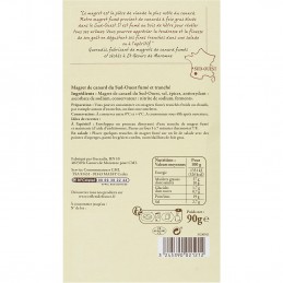 Ankbröst från sydväst, salt, kryddor, antioxidant: natriumaskorbat, konserveringsmedel: natriumnitrit, fermenteringsmedel.