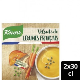 Upptäck den läckra Knorr® franska grönsaksveloutéen. Denna flytande soppa, tillverkad i Frankrike, tillagas med 100 % franska grönsaker! Våra grönsaker är noggrant planterade och skördade när de är mogna, och odlas hållbart och ansvarsfullt av våra partnerbönder. Denna grönsakssoppa, med näringsvärde B, är gjord på 100 % naturliga ingredienser och franska grönsaker från hållbart jordbruk. Den innehåller inga smakförstärkare, färgämnen eller konserveringsmedel (som alla flytande soppor i den varma hyllan). En njutning för hela familjen! Genom att välja Knorr®-kartongen som är certifierad med FSC®- och ASI®-märkningen tar du hand om vår planet. Knorr®-soppkartonger stöder verkligen ansvarsfulla aluminiuminköp och deras kartong kommer från hållbart förvaltade skogar och andra kontrollerade källor. Detta 2 × 30µl-format låter dig servera 2 skålar soppa med en utsökt grönsakssmak. Ett tröstande recept som är snabbt och enkelt att tillaga: skaka, häll, värm utan att koka... och njut! Den finns även i 1-litersformat. Upptäck andra 100 % franska grönsakssoppor tillverkade i Frankrike: Fransk morotsvelouté, fransk purjolöksvelouté eller till och med fransk grönsaksmouline. Knorr® arbetar för en hållbar matframtid för dig och planeten.