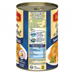 Ingredienser: Vatten, förkokta dumplings 36 % (VETEmjöl, fläskfett, vatten, färska ÄGG (4,5 %), GÄDDA (4 %), salt, naturlig arom), grädde (MJÖLK, stabiliseringsmedel: karragenan), trippel tomatkoncentrat, modifierad stärkelse, MJÖLKpulver, konjak, aromatiska växter, KRÄFTEXTRAKT, GRÅRÄKpulver (spår av BLÖTDJUR), kryddor, salt, naturel.Porc arom. Fläsk från Europeiska unionen.