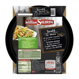 Grönsaker (51 %): morötter, zucchini, svamp (antioxidant: askorbinsyra, surhetsreglerande medel: citronsyra), ärtor. Kött: Förkokt, lufttorkad kalv (25 %): salt, stabiliseringsmedel: E451, E452. Sås: vatten, bearbetad majsstärkelse, aromer, olivolja (0,3 %), koncentrerad citronsaft (0,2 %), salt, timjan, förtjockningsmedel: xantangummi, kryddor, smakförstärkare: E63.