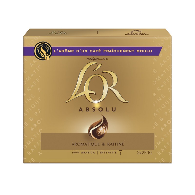 L'OR Absolu premiummalet kaffe är skapat ur en unik blandning av fina Arabicabönor och avslöjar en balanserad och förfinad smak med lätt rostade toner.