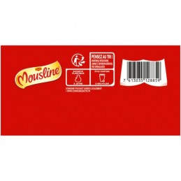 Fransmännens favoritpotatismos. En krämig mos med unik smak, tillagad med 99 % fransk potatis. Potatisen, som mestadels skördas i Picardie, levereras till MOUSLINEs produktionsanläggning. Den tvättas noggrant, skalas och ångkokas. Den mosas sedan till en puré, från vilken vattnet extraheras för att reducera den till flingor. Inga färgämnen. Inga konserveringsmedel. Inga aromer. Tillverkad i Picardie. Återvinningsbar kartong. En låda innehåller 3 påsar för 2 personer.
