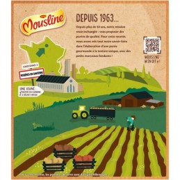 Upptäck en puré med unik konsistens, med små bitar som smälter i munnen. Med mer än 87 % potatis erbjuder MOUSLINE Façon Presse-Purée dig en puré för hela familjen, len och utsökt, som kommer att påminna dig om smaken av potatis som delikat körs genom en potatispress. En förpackning innehåller 3 påsar för 4 personer.