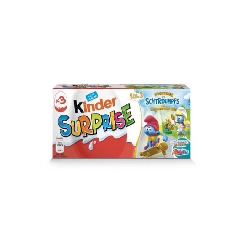 Se till att glädja ditt barn med KINDER SURPRISE. Ett unikt ägg med den utsökta smaken av KINDER-choklad och en liten leksak inuti: garanterad överraskningseffekt!
