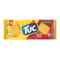 Ingredienser: VETEMJÖL, solrosolja 17 %, KORNmaltextrakt, glukossirap, jäsmedel (ammoniumkarbonater, natriumkarbonater), salt, ÄGG, aromer (innehåller MJÖLK, baconarom, rökarom), smakförstärkare (mononatriumglutamat, dinatriumguanylat, dinatriuminosinat), mjölbehandlingsmedel (natriumdisulfit), koncentrerad svart morotsjuice, färgämnen (E120, E160c).