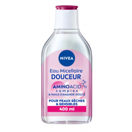 NIVEA Gentle Micellar Water med sitt aminosyrakomplex, berikat med miceller och aminosyror, avlägsnar skonsamt smink och orenheter utan att gnugga eller skölja. Återfuktad tack vare sin formula som består av sötmandelolja, gör huden mjuk och len. NIVEA Gentle Micellar Water är lämplig för torr hud och är idealisk för känslig hud. Dess oparfymerade formula innehåller 97 % ingredienser av naturligt ursprung. Flaskan är tillverkad av 97 % återvunnet material (exklusive lock, insats och etiketter) och 100 % återvinningsbar. Våra micellarvatten är dermatologiskt och oftalmologiskt testade. Fukta en bomullsrondell och torka av den över ansikte, läppar och ögon utan att gnugga. Ingen sköljning krävs.