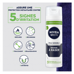 För män med känslig hud som vill bekämpa irritation och sveda från rakning. NIVEA MEN Sensitive Skin Shaving Gel innehåller 0 % etylalkohol. Tack vare sin formula berikad med trollhassel mjukar denna rakgel upp skägget för en nära rakning och en exceptionell känsla av komfort. Dess skonsamma formula, berikad med kamomill och E-vitamin, skyddar din hud mot de 5 tecknen på irritation som orsakas av känslig hud: rodnad, torrhet, mikroskär, känsla av värme och stramhet. DERMATOLOGISKT TESTAD PÅ MÄN MED KÄNSLIG HUD. Bruksanvisning: Ta lite gel i händerna och löddra det på ditt fuktiga ansikte och massera lätt.