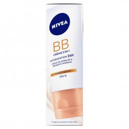 NIVEA 5-i-1 BB Cream Medium Shade är berikad med ekologisk jojobaolja och mineralpigment. Den återfuktar huden intensivt i 24 timmar. Denna BB Cream jämnar ut hudtonen och förfinar hudens struktur. Den minskar skavanker och tecken på trötthet, mörka ringar, finnar och rodnad. 5-i-1 BB Cream ljusar upp och förbättrar hyen. Dess SPF 15 hjälper till att skydda din hud från solens skadliga effekter. Din hud blir len och strålande. Den är lämplig för alla hudtyper, särskilt normal hud. Applicera på ansikte och hals efter noggrann rengöring.