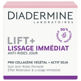 LIFT+ IMMEDIATE SMOOTHING Day Cream kombinerar två riktade anti-aging-effekter: Formulan berikad med prokollagen verkar på de viktigaste typerna av kollagen. Den stimulerar den naturliga produktionen av kollagen och förtätar dess struktur för att förbättra hudens fasthet och ge en långvarig åtstramande effekt. Förutom sin ultrakomfortabla konsistens lägger formulan berikad med Phyto-Tensors en osynlig åtstramande slöja på huden för en omedelbar utjämnande effekt.