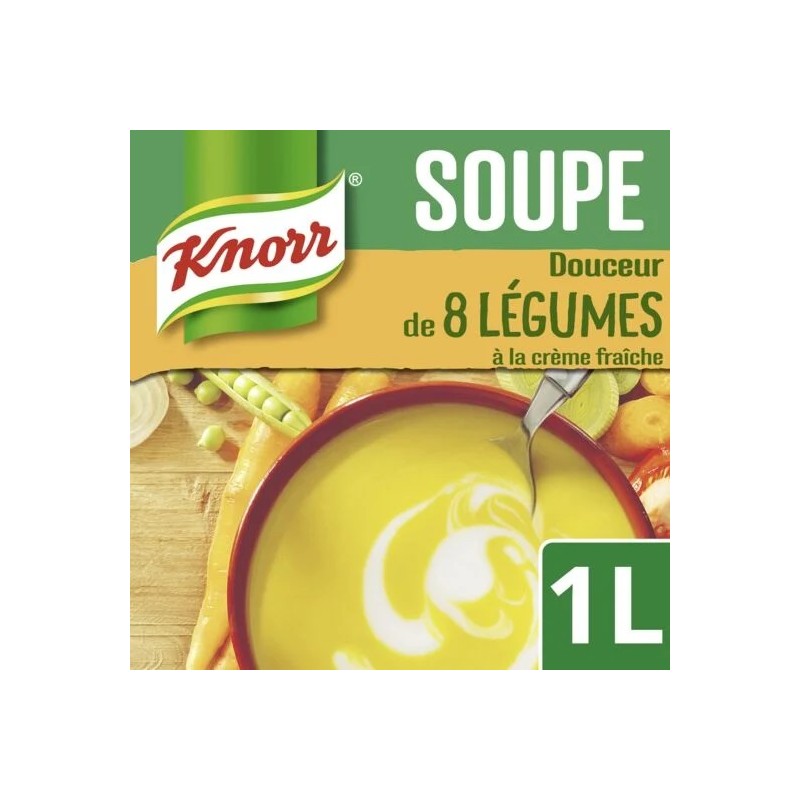 Unna dig denna läckra soppa med 8 grönsaker, förstärkt av Knorr®-kockar med en touch av crème fraîche för gourmeternas nöje. Knorr®-recept ger smaken av trädgården till vardagen, i flytande grönsakssoppor tillagade av våra kockar med läckra ingredienser från hållbart jordbruk. Detta fylliga recept kombinerar morötter, tomater, lök, purjolök, potatis, squash, rotselleri och ärtor odlade på öppna fält. Den har tillagats utan smakförstärkare, färgämnen eller konserveringsmedel, enligt föreskrifterna. Våra flytande soppor i rumstemperaturen värms upp till höga temperaturer för att bevara sin kvalitet utan tillsats av konserveringsmedel. Snabb och enkel att tillaga, denna Knorr® 8-grönsakssoppa är perfekt för att njuta av en hälsosam och utsökt måltid när du har ont om tid. Skaka, häll, värm och njut av dess lena och behagliga värme. Inget behov av att tillsätta salt. Denna 1-litersstorlek ger dig räcker till 4 generösa skålar soppa. Upptäck andra Knorr®-soppor (velouté, puré, potatis och torkad soppa), läckra recept som ger dig värme och komfort. Bästa möjliga kvalitet är vår filosofi när det gäller mat. Sedan Knorr® grundades av Carl Heinrich Knorr i Tyskland år 1838 har alla våra ansträngningar varit inriktade på att skapa originella recept och läckra rätter. Vår historia består av tusentals små anekdoter från passionerade bönder, leverantörer och kockar som försöker göra världen till en bättre och godare plats. På Knorr® tror vi att ansvarsfull användning av jordbruksresurser bidrar till att ge dig kvalitetssoppor. Det är därför vi väljer grönsaker från hållbart jordbruk och odlade på öppna fält för att tillaga våra läckra soppor. Dessutom är våra förpackningar FSC-certifierade och 100 % återvinningsbara. Det är ett miljövänligt tillvägagångssätt som vi är övertygade om påverkar smaken på varje rätt du lagar. Oavsett dina begär finns Knorr® där för dig varje dag.