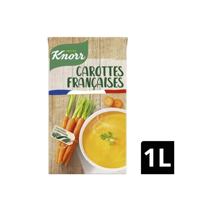 Upptäck den läckra Knorr® franska morotssoppan, gjord i Frankrike med franska morötter! De är noggrant planterade och skördade vid mognad, och odlas i Bretagne på ett hållbart och ansvarsfullt sätt av våra partnerbönder. Med en Nutriscore B-klassning är denna soppa gjord på 100 % naturliga ingredienser och grönsaker från hållbart jordbruk. En njutning för hela familjen, unga som gamla! Denna vegetariska soppa innehåller inga smakförstärkare, färgämnen eller konserveringsmedel (som alla flytande soppor i den varma hyllan). Genom att välja Knorr®-kartongen som är certifierad med FSC®- och ASI®-märkningen tar du hand om vår planet! Knorr®-kartonger stöder verkligen ansvarsfull inköp av aluminium och deras kartong kommer från hållbart förvaltade skogar och andra kontrollerade källor. Detta 1-litersformat ger dig plats för 4 generösa skålar soppa. Ett tröstande recept som är snabbt och enkelt att tillaga: skaka, häll upp, värm utan att koka och njut! Knorr® arbetar mot en hållbar matframtid för dig och planeten. Genom våra produkter, recept och råd vill vi hjälpa dig att göra små, vardagliga förändringar som gör hela skillnaden. Låt oss tillsammans bygga en bättre matframtid!