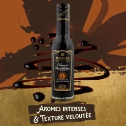 Modenas balsamvinäger-sammet lever upp till sitt rykte i denna geniala tillagning skapad av Maison Maille. En krydda som inte behöver reduceras, dess silkeslena, sammetslena konsistens ger djup till sallader och framhäver smakerna av grillade grönsaker. Den passar också underbart ihop med säsongens jordgubbar. Med nästan 270 års kreativ tradition och expertis är Maille den touch som väcker och avslöjar en rätts skönhet. En touch av kreativitet som förhöjer smaken, ökar njutningen och tillfredsställer de mest krävande gourmeterna. Mailles produkter bjuder in dig på en resa in i smakernas värld. Med en passion för detaljer, nyansernas konst och förfining som sina föredragna passagerare.