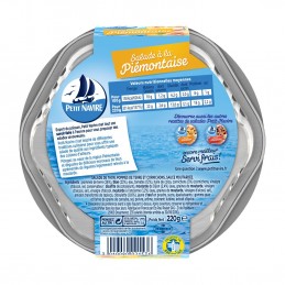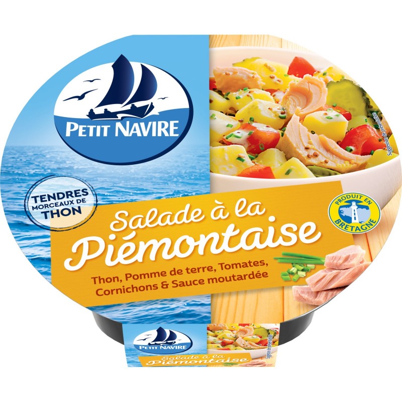 Potatis (27 %), tonfisk (23 %), vatten, tomater, rapsolja, ättiksgurka (3 %) (ättiksgurka, spritvinäger, salt, konserveringsmedel: kaliumdisulfit), dijonsenap (vatten, senapsfrön, spritvinäger, salt), spritvinäger, gammaldags senapsfrön (vatten, senapsfrön, spritvinäger, salt), bearbetad tapiokastärkelse, gräslök, pulveriserad äggula, socker, förtjockningsmedel: guarkärnmjöl och johannesbrödkärnmjöl, salt, paprika, aromämne, färgämne: lutein, gurkmejaextrakt.