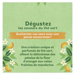 Grönt te smaksatt med apelsinblomma och mandarin.