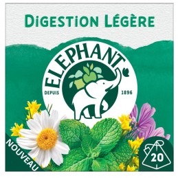 Med Light Digestion-tepåsen och dess 20 Pyramid®-tepåsar kan du ta det lugnt och njuta av den uppfriskande smaken av myntablad, känt för sina matsmältningsegenskaper, i kombination med blommiga toner av kamomill och ljuvligt träiga toner av rooibos. Genom att välja Rainforest Alliance-certifierade örter vill Elephant ta hand om planeten och varje dag bidra till en bättre värld för människor och natur. Det är vårt sätt att ingjuta glädje och gott humör. Hemligheten bakom vår tepåse? 100 % av ingredienserna är av naturligt ursprung. Bara för dig har Elephant noggrant valt ut växter för att erbjuda dig denna Well-Being-serie. För en idealisk smakupplevelse, låt din Pyramid®-tepåse dra i 4–5 minuter i 200 ml varmt vatten och njut. Elephant-äventyret började 1896 och fortsätter än idag. Vilket, såvitt elefanter kan minnas, är en riktig upplevelse för en teskapare... Hans största nöje har sedan alltid varit att väcka våra smaklökar! Elephant gör lyssnandet till naturen till en verklig styrka, som han använder för att välja de bästa växterna och skapa läckra, unika infusioner som uppskattas av alla. Men missta dig inte, Elephant*, fransmännens favoritmärke, tillför i sin stora generositet också vänlighet, enkelhet, en touch av humor och en touch av originalitet. Så gå med i stammen och upptäck alla andra läckra recept i vårt Well-Being-sortiment. *Elephant, värde- och volymledare i Frankrike — Nielsen år 2022